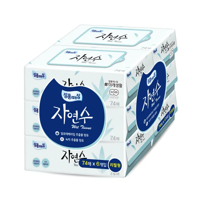 잘풀리는집 자연수 물티슈, 74매, 6개 구매