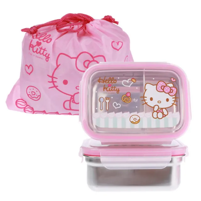 헬로키티 아동용 주머니 스텐 밀폐 2단 도시락, 혼합 색상, 1개 구매