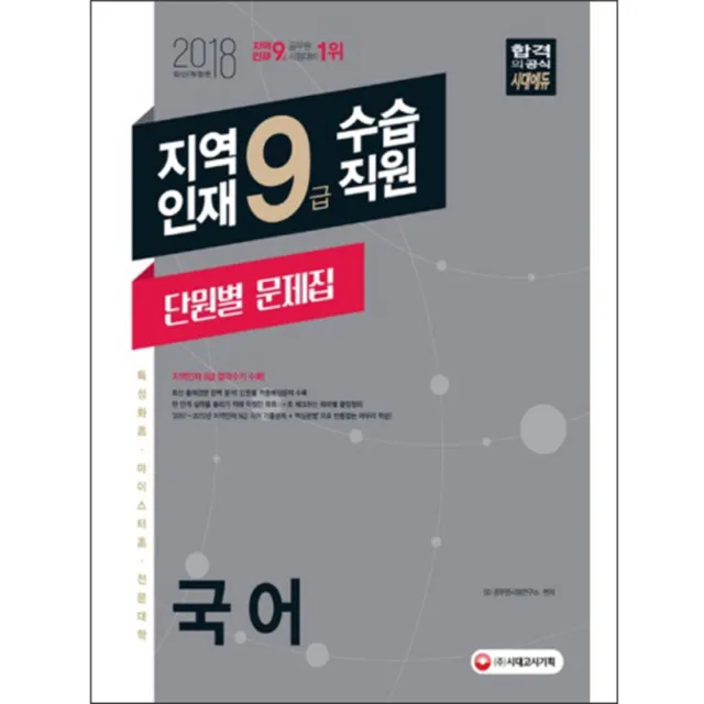 2018 국어 단원별 문제집(지역인재 9급 수습직원) : 특성화고 마이스터고 전문대학 인재 선발, 시대고시기획 구매