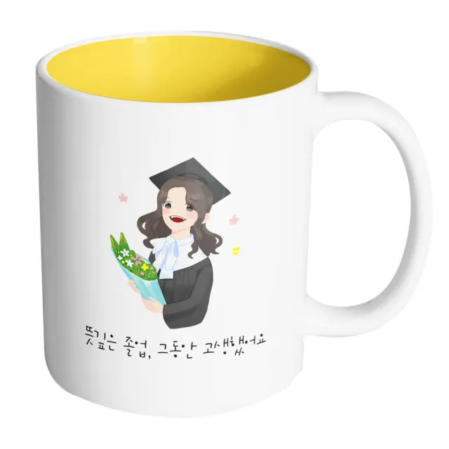 핸드팩토리 여학생졸업축하 뜻깊은 졸업 그동안 고생했어요 머그컵, 내부 옐로우, 1개