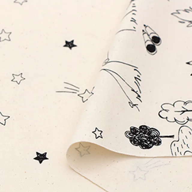르시앙 별과 동물 친구들 옥스퍼드 패브릭 원단, 내추럴 + 블랙 구매