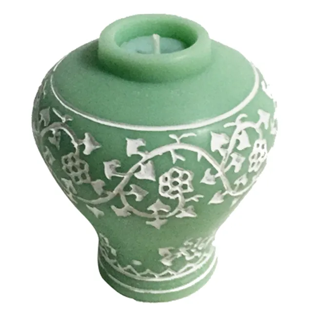 누 백자 청화보상당초문 미니어처 항아리 향초, 올리브색(라벤더)
