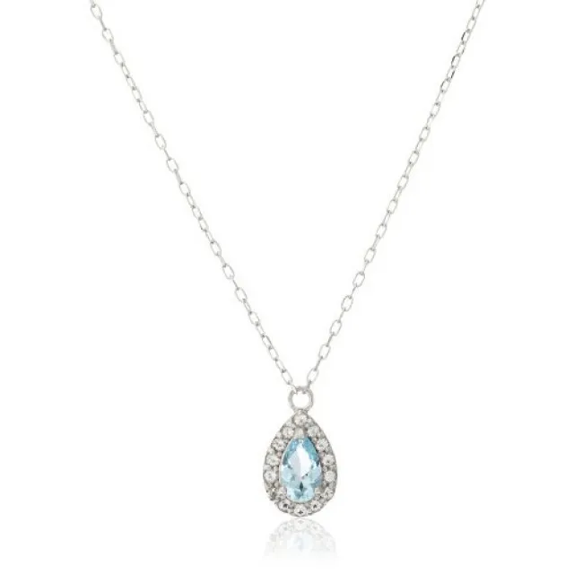[M E 류《구스》]me.luxe【잡지 게재품】스와로브스키 젬 스톤즈 블루 topaz 드롭 넥크리스 (K10화이트 골드)95-0983