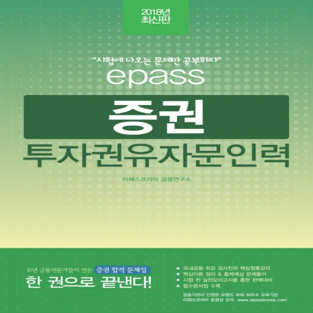 이패스 증권투자권유자문인력(2018):15년 금융전문가들이 만든 증권 합격 문제집, 이패스코리아 구매