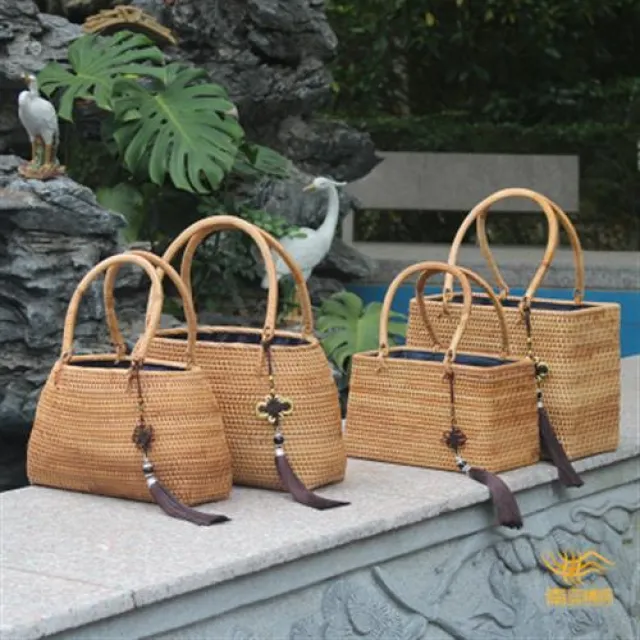 여성 밀짚가방 라탄 왕골 베트남 수입 가을의 등나무 핸드백 짚 가방 패키지 모리 바구니 족집게는 복고풍 예술 손으로 짠 구매