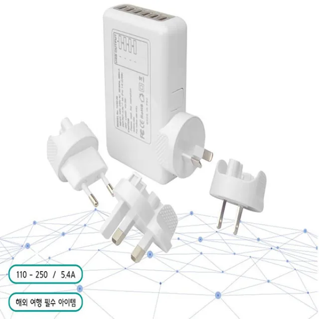 4포트 USB 고속 멀티 여행용어댑터 고효율 저에너지 소비량, 1개