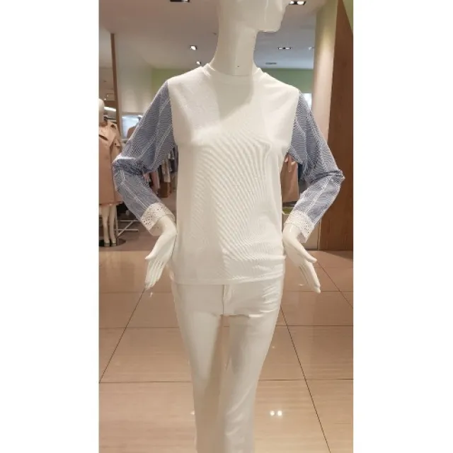 [더아이잗] 소매통 블라우스 배색 티셔츠 (IJ3N0TS75)