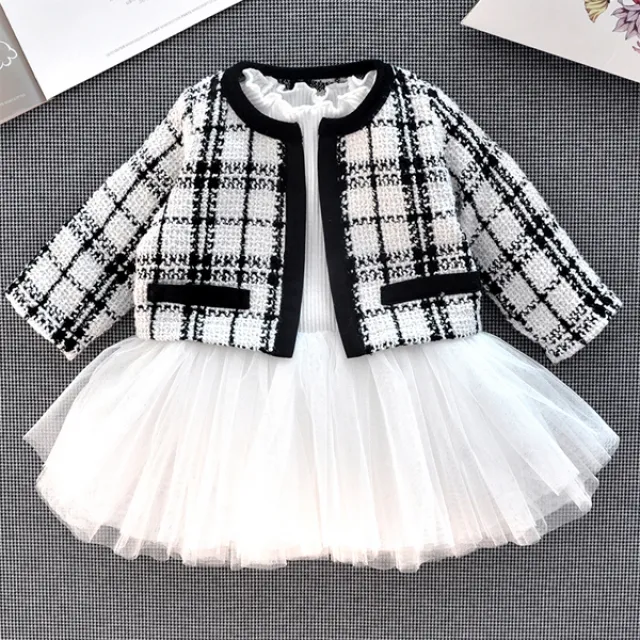 엠케이 여아용 모던 체크 유아 투피스