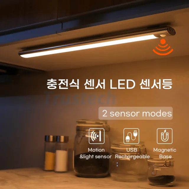 Hnlife 무선 LED 자동 센서등 충전식 휴대용 비상등, 난색440mm