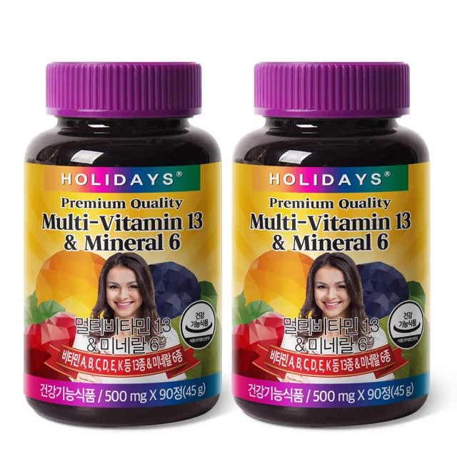 홀리데이즈 멀티비타민13 & 미네랄6, 90정, 2개