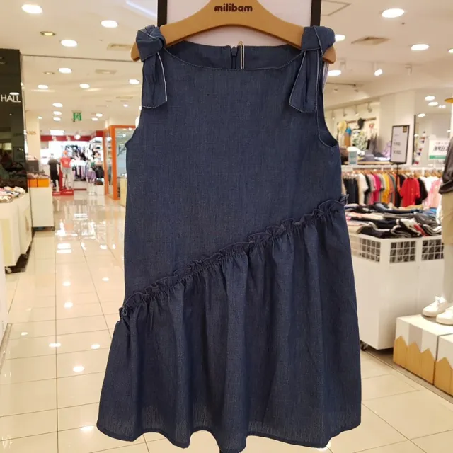 밀리밤 5900원~[최종가80% 초특가 파격세일]재입고 인기템~!!여름 이월상품~~어께리본 포인트 민소매 데님 롱원피스
