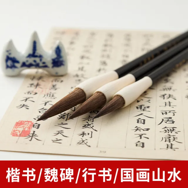 휘호발묵대 중소해서붓 겸비털털회회대호 행서국화 붓 성인학생 초학자 매일 문방사보 서예 입문 붓 세트 휘호발묵 (회호) 연필 (대중소 3, 단일상품 구매
