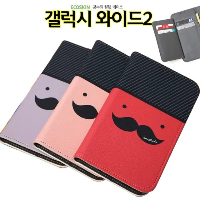덕&컴 폰케이스 [ECO 월렛 콧수염 갤럭시와이드2 케이스 J727 카드 지갑] 젤리케이스 추천케이스 하드케이스