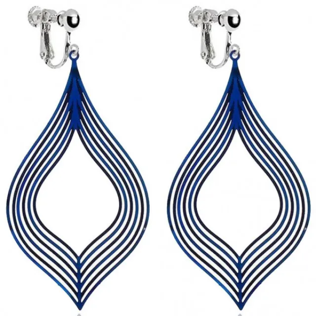 여자 여성을위한 다니다 귀걸이 Screwback 아트 데코에 손수 블루 금속 젖빛 스트라이프 클립 구매