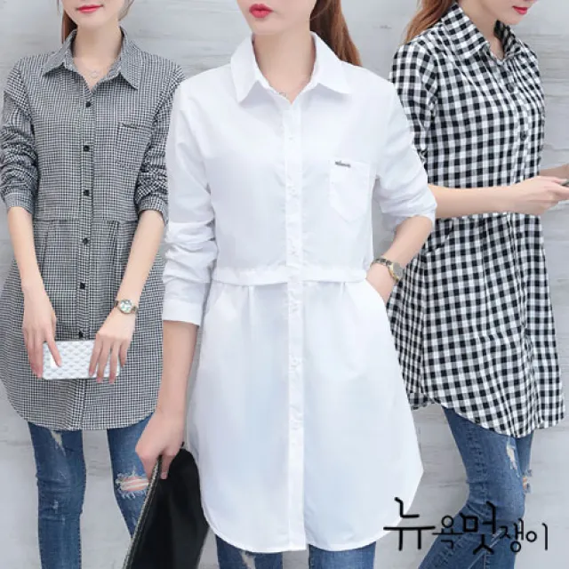 뉴욕멋쟁이 허리 라인 체크 롱블라우스 롱남방 롱셔츠 구매