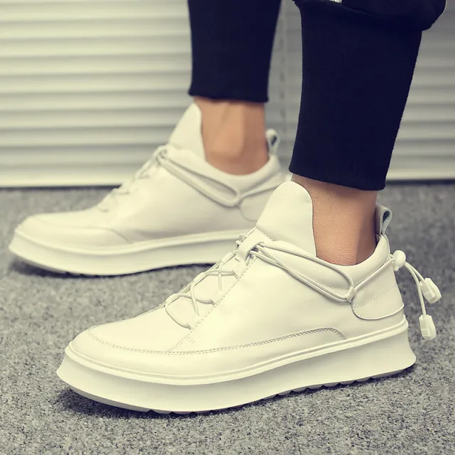 도오빠 고급 남자 운동화 가죽 패션 캐주얼 하이탑 키높이 단화 캔버스 워킹 신발 남성운동화 스포츠남자 여름 새로운 남자의 트렌드 야생 흰색_66384(50)