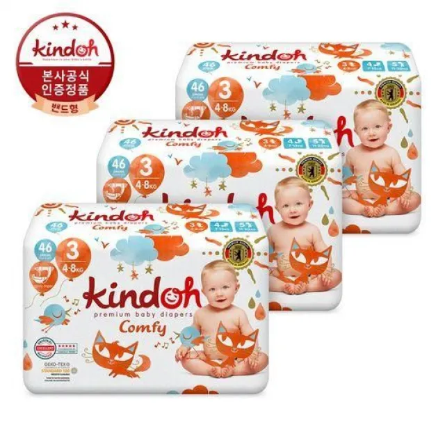 킨도 킨도 밴드기저귀 컴피 3단계 공용 46매 3팩, 밴드 컴피 3단계 공용 46매 3팩