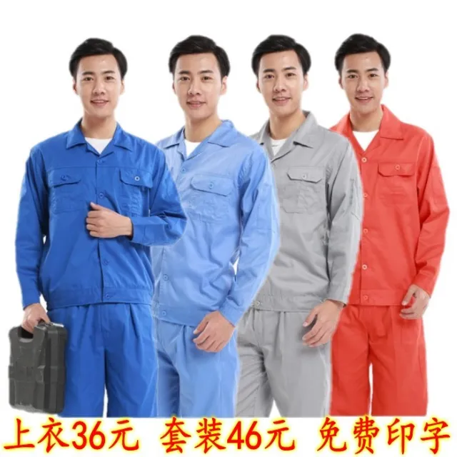 남자작업복바지 여름시즌 얇은스타일 긴팔 작업복 상의 남성딥블루 공장작업장 바지 프로그램 작업보호 운동복세트, C04-주황색 명시적으로 압수한 상의