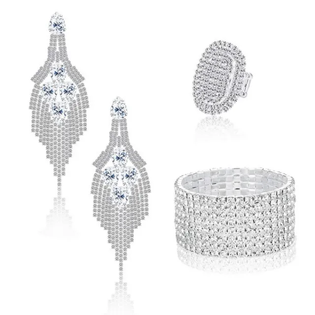 여성 스파클링 라인 석 스트레치 팔찌 반지 다니다 술 귀걸이 세트 의상 보석에 대한 Sllaiss 라인 석 신부 보석 세트 구매