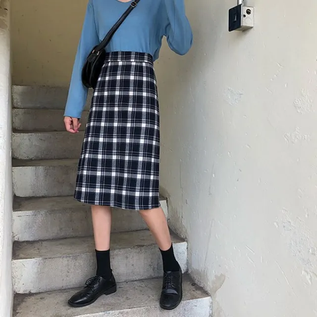 지니네 여성 가을 겨울 캐주얼 하의 스커트 하이웨스트 체크 체크무늬 롱스커트 체크스커트 HJ 구매