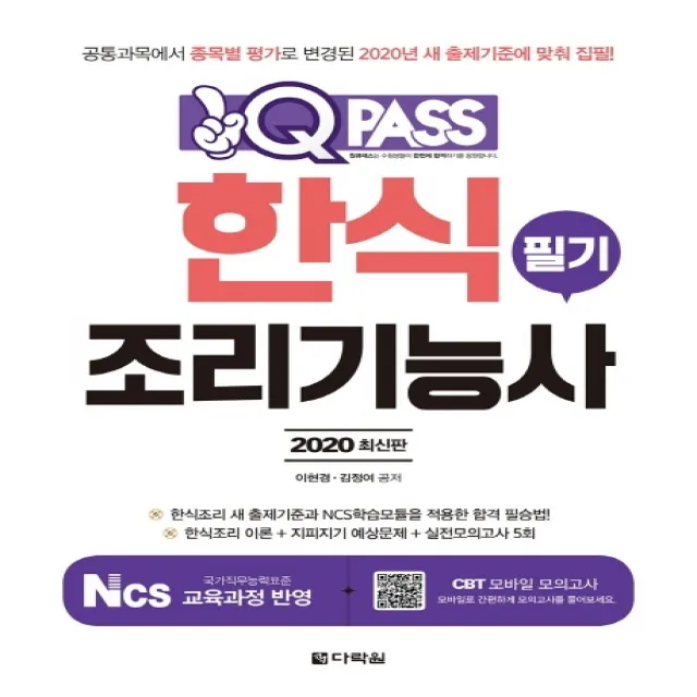 원큐패스 한식조리기능사 필기(2020):새 출제기준과 NCS학습모듈을 적용한 합격 필승법!, 다락원