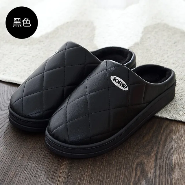 볼링화 방수 면슬리퍼 여성겨울 홈웨어 pu가죽면 슬리퍼남성 미끄럼방지 소프트두꺼운바닥 털추가 바닥 닦기