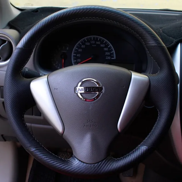 자동차핸들커버 19스타일 X-Trail티아나 손바느질 핸들세트 블루버드 18스타일 Sylphy Qashqai Tiida가죽 전용 자동차 핸들커버, 기본
