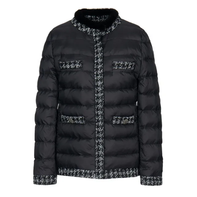 베스띠벨리 [2019년 구스다운 70%할인][무료배송] 밍트 트리밍 트위드 블랙 패딩 점퍼<거위 솜털 80%> 구매