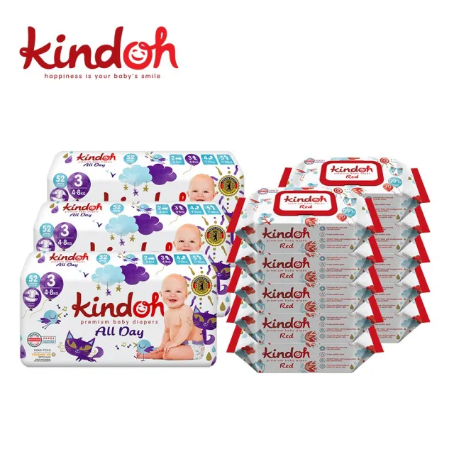 킨도 밴드기저귀 올데이 3단계 공용 52매x3팩+킨도 프리미엄 아기 물티슈 레드70x10팩 밴드형 기저귀, 150매 구매