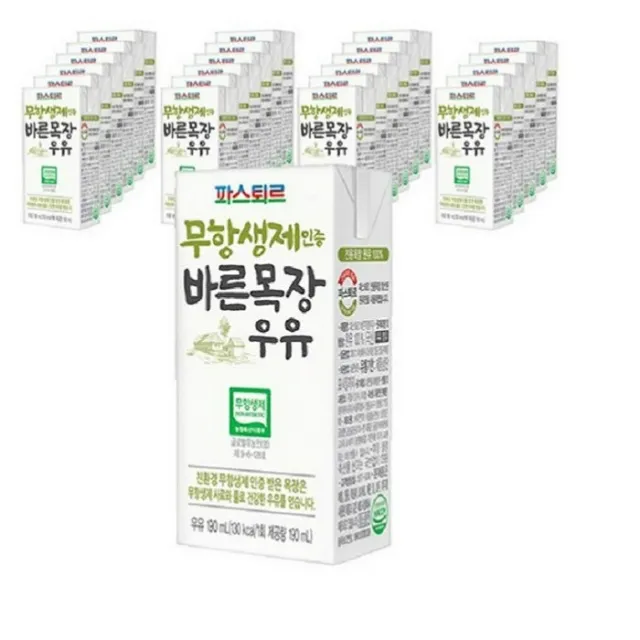 파스퇴르우유 파스퇴르 멸균우유 바른목장우유190ml(24팩) 구매