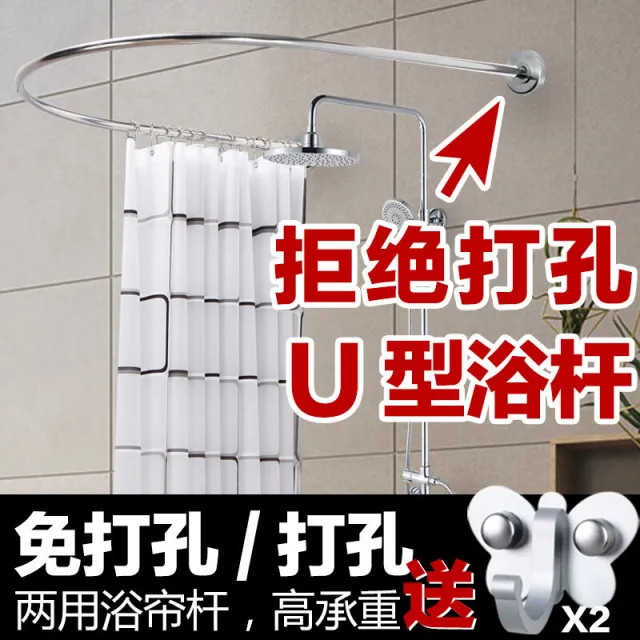 삼간간주간사 타공 유형 목욕 커튼 화장실 스테인리스 스틸 샤워실 샤워실 세트 욕실 유형 궤도면 타공방U90*90*90*90 + 샤워커튼+고리, 상세페이지 참조