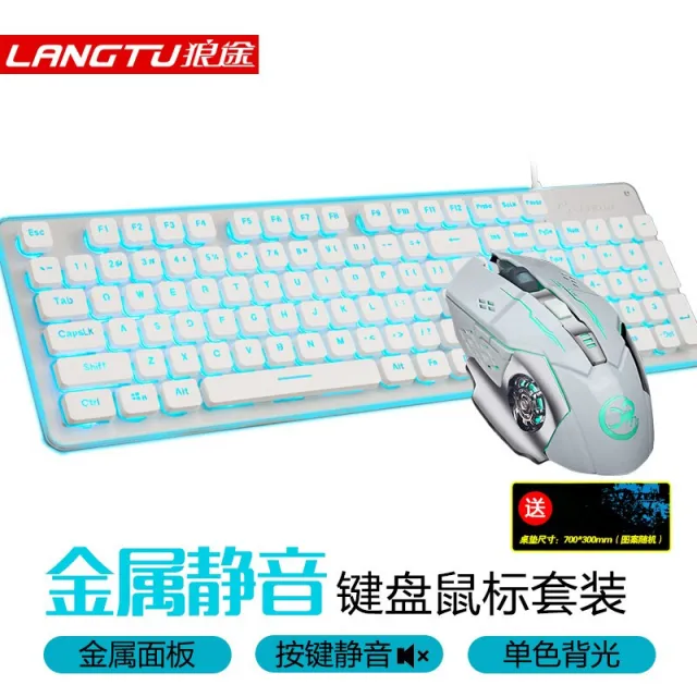 승냥이도식닭게임키보드마우스 세트 노트북 PC usb 사무용 케이블 마우스 마우스 로봇 감지 소리 없는 정음기 메탈 등 키보드 은백색 스크래치 패널 +L5 무성 마우스, 상세페이지 참조, 상세페이지 참조 구매
