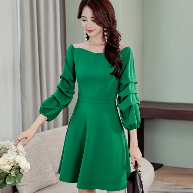 도깨비몰 여성 오프숄더 원피스 벌룬 커브스 명품스타일 하객룩