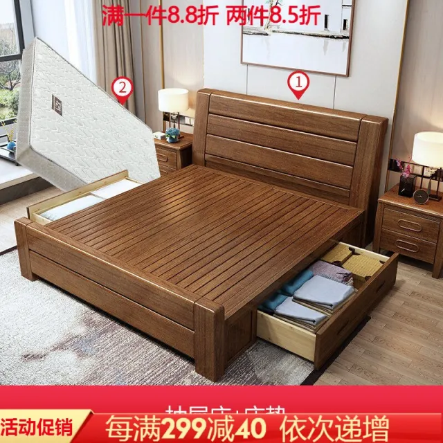[브랜드 직영] 금실 호두나무 실목상 더블침대 고인상 저축물 침대 신중식 대자연현대약의 메인 침대 1.8m 서랍 침대+침대깔개 1500mm*2000mm 프레임 구조, 상세페이지 참조 구매