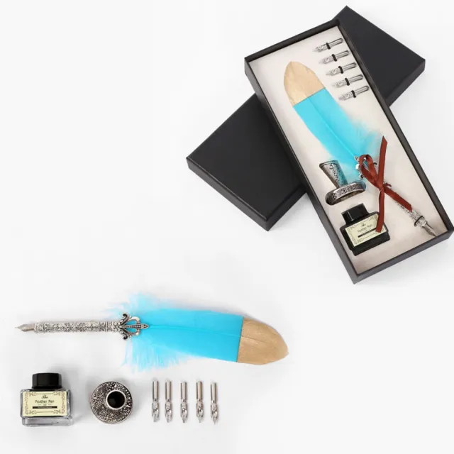 중독성 필기감 골드펄 깃털 만년필 세트 스카이 1P 선물용만년필/기념만년필/필기구/수입만년필/학용품, 단일 색상, 단일 만년필 펜촉굵기 구매