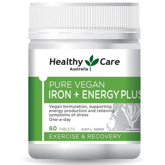 헬씨케어 철분+에너지플러스 퓨어비건 에너지 스트레스 신경계 면역 적혈구건강 60정, 1개 구매