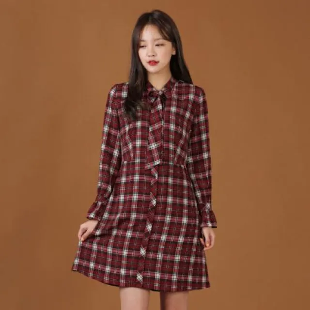 [엔터식스]로엠 타이넥 체크 캐주얼 원피스 RMOW84VGQ1RMOW84VGQ1-2