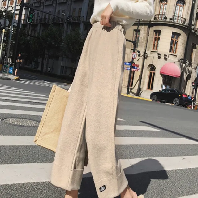 쟈스민 여성 밑단 폴디드 모직팬츠 XT777
