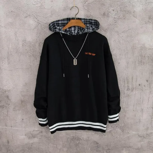 빅피플 체크 후드 배색 니트 청소년 QP11