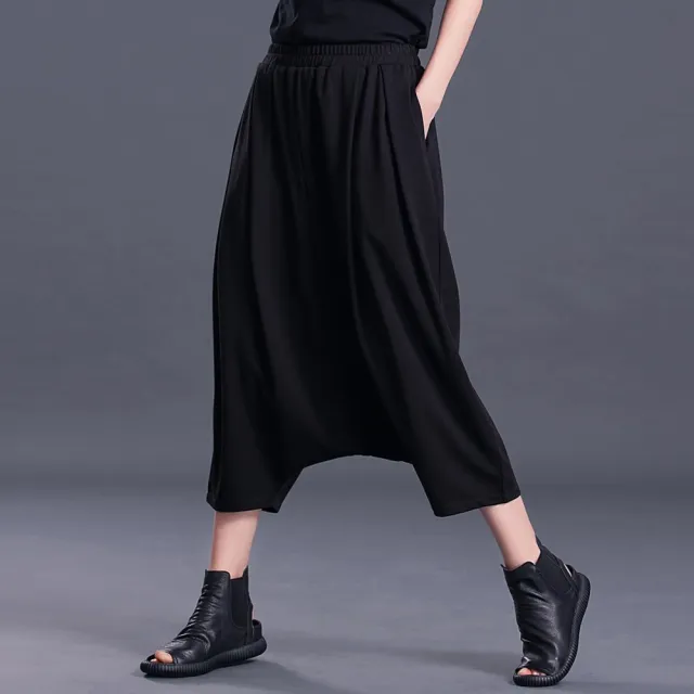 동대문스타일 빅사이즈 절개 8부 스판 여성 면바지 배기팬츠