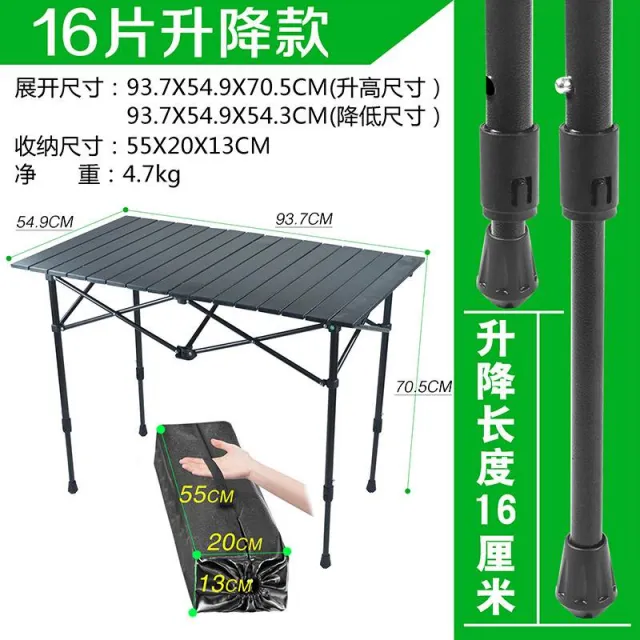 야외테이블 실외 접이식 알루미늄합금 책상 휴대용 직사각형 노상테이블 야외음식 바베큐 자동차여행, T06-16개 승강가능 95*55그물 돌보다 주머니 구매