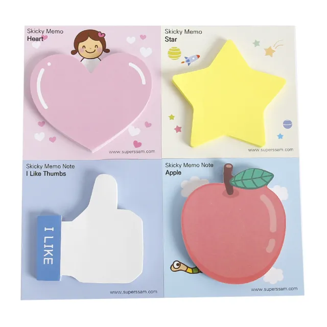 슈퍼쌤 모양 포스트잇 4종 세트, 핑크 하트, 형광 별, 좋아요 엄지척, 사과, 1세트 구매