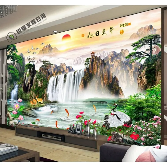 송 년 3d 입체적인 풍수 와 그림 배경 벽 벽화 중식 풍경 장식 텔레비전 벽지 산수화 거실 영상 벽지 Y 틈 없 는 수입 캔버스 / 평방미터 벽지 + 특수 풀 구매