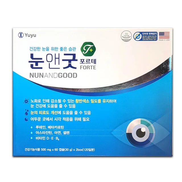 유유제약 눈앤굿 포르테 120캡슐 (4개월분) 루테인+아스타잔틴+항산화, 2박스 구매