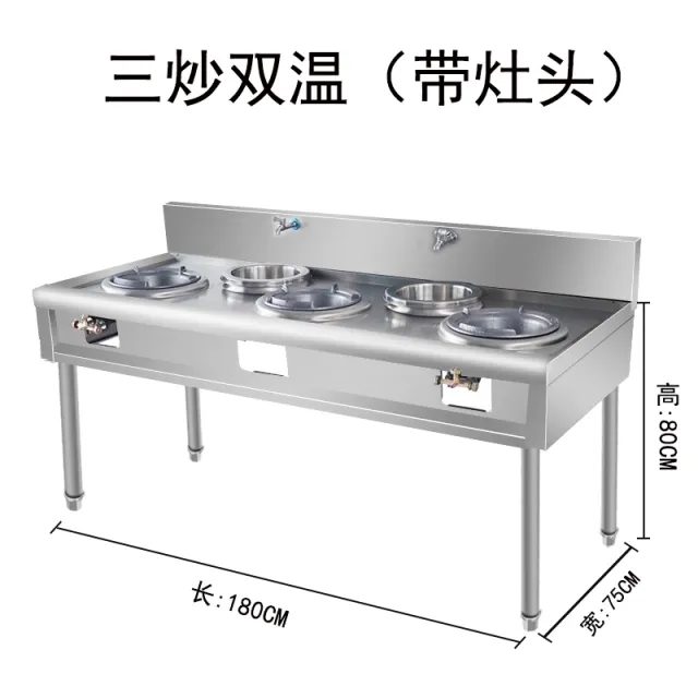 렌지대 스테인레스 부뚜막 가스 강력한화로 벤치로 액화가스 튀김 레인지대 자호텔 가스레인지 상업용, T22-1800*750*800 3.0쌍온을 볶다 포함화로 헤드 액화가스 구매