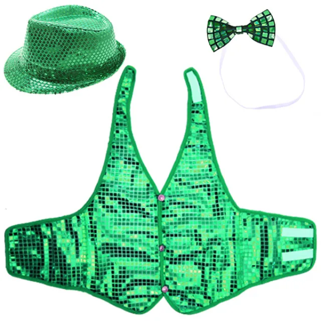 반짝이모자 + 반짝이 조끼 XL + 나비 넥타이 세트, 그린, 1세트