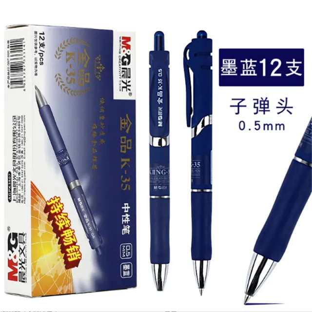볼펜 사무 K35중성펜 카본 블랙워터 펜서명 탄두 중성펜, T07-금붙이 진남색 색 12개 구매