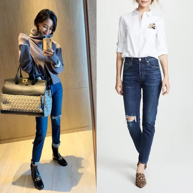 위파인더 [폭발 바지 타입] CH 신 Zhilei 같은 단락 단일 구멍 아홉 청바지 여성 높은 허리 블루 탄성 스트레이트 구매
