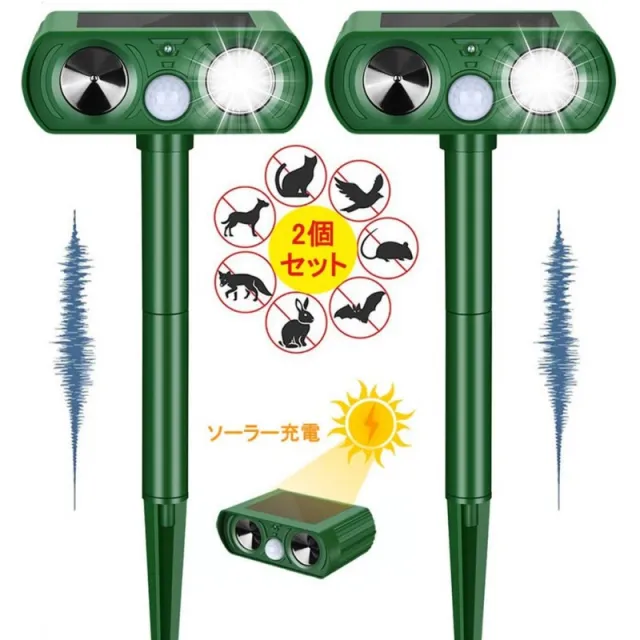 고양이 차양 대책 2 개 Elikliv 동물 격퇴 기 고양이 차양 제품 초음파 LED 강력한 플래시 태양열 충전식, 1