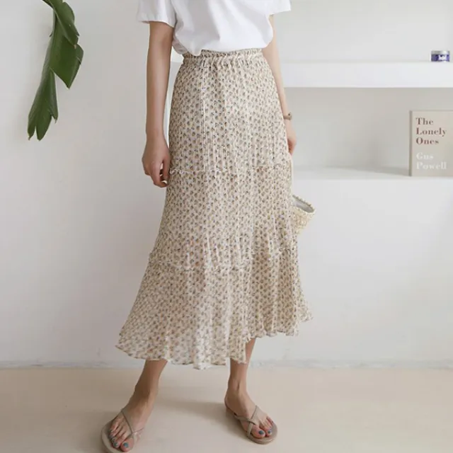 쁘띠꼬모 여름 여성 플로랄 쉬폰 캉캉 프릴 롱스커트 허리밴딩 4컬러 GX562740